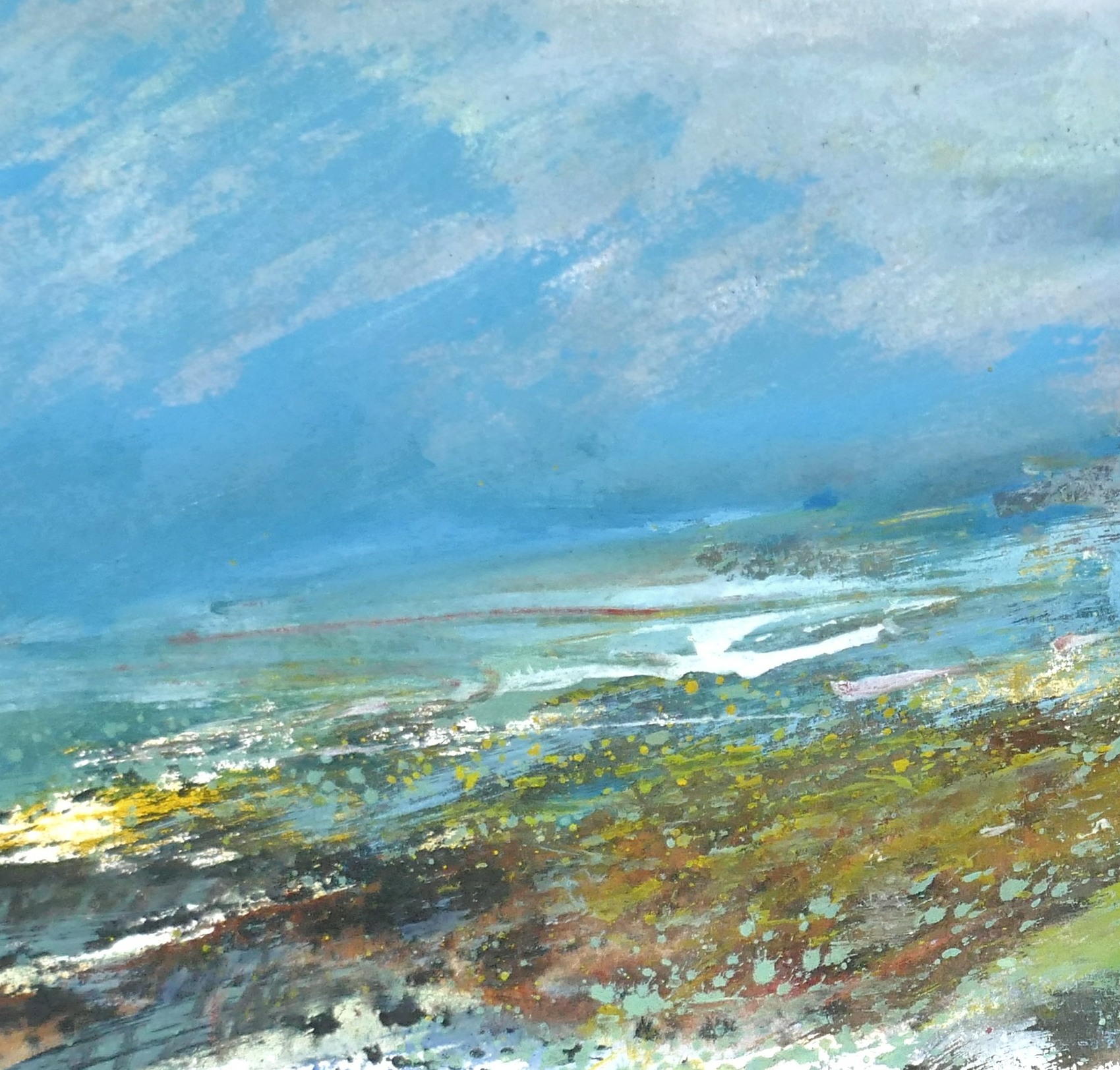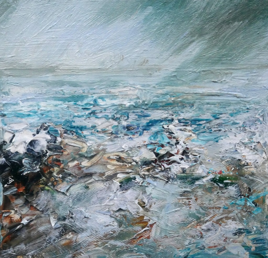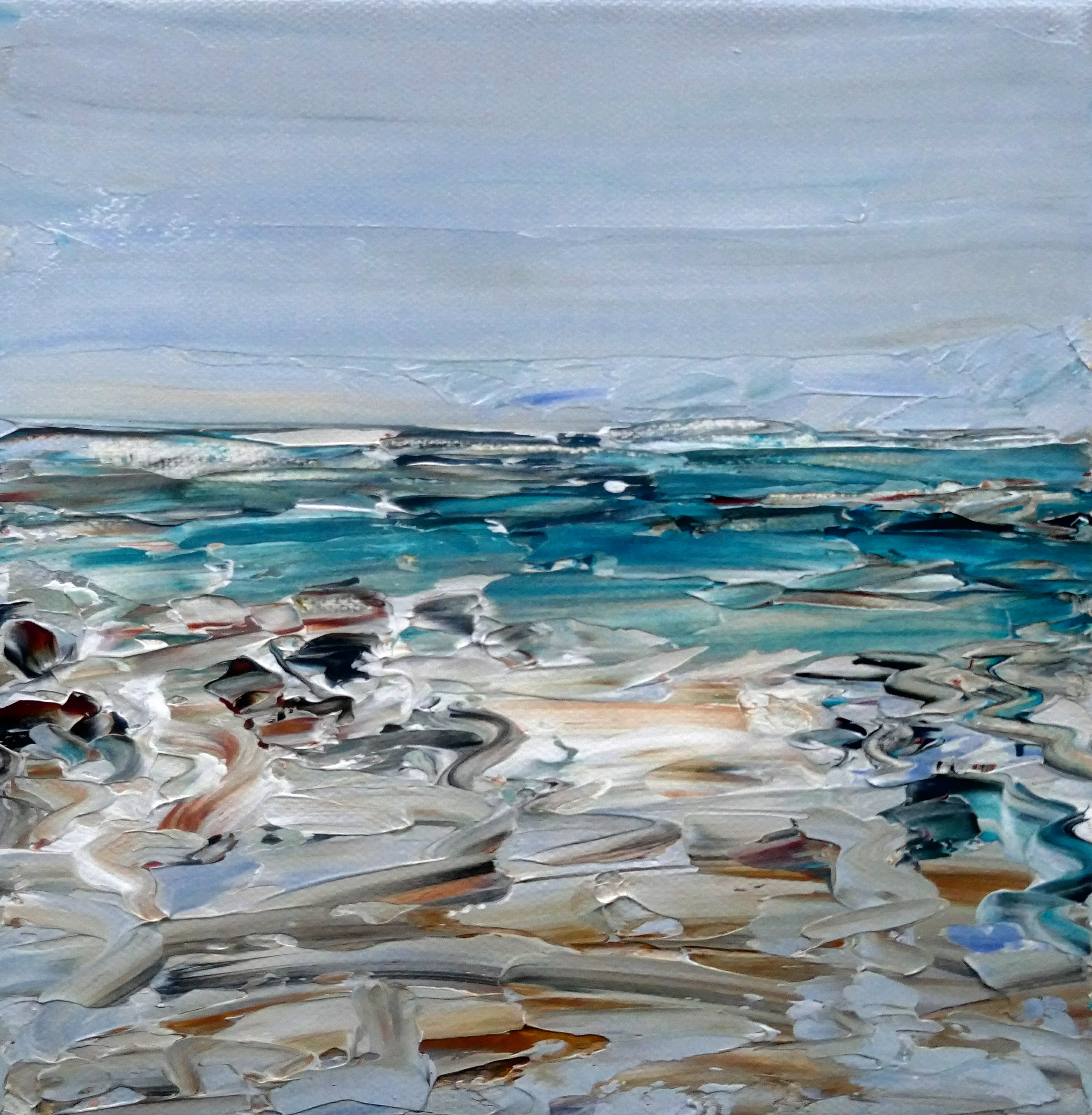 #Pleinair #MixedMedia #Painting on 20x20cm Canvas “Changing Weather Conditions, Porthchapel Beach, #Cornwall”
