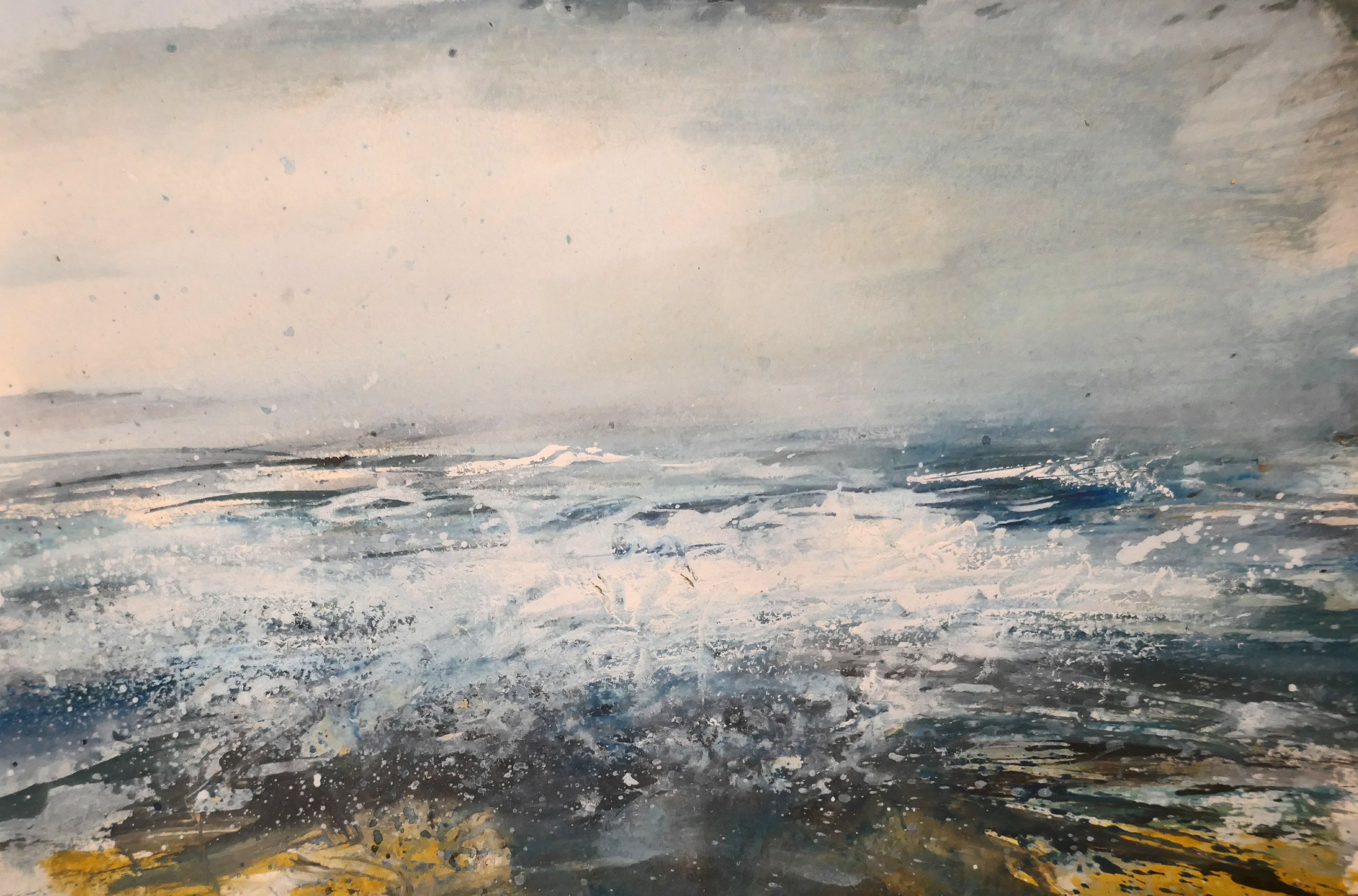 #Pleinair #Ink #painting on Paper “Breaking Waves, Chypraze Cliffs, Pendeen, #Cornwall