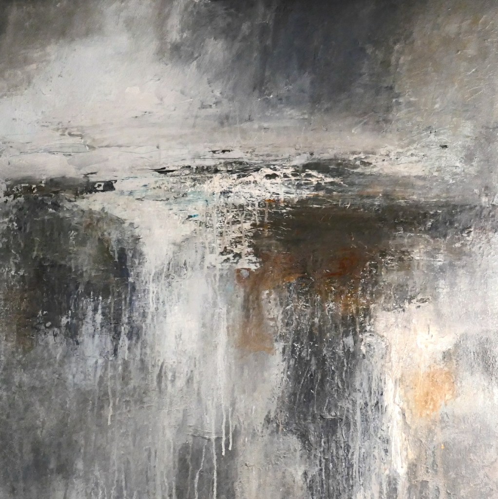 #MixedMedia on 80x80cm Canvas “Winter Wind, Rain and Cloud” #Abstract #Painting Inspired by the Landscape around #Porthcurno, #Cornwall →