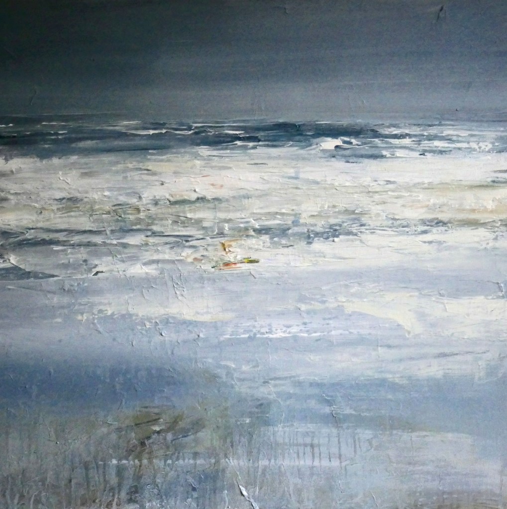 #Painting #MixedMedia on 60x60cm Canvas “Morning, At the Waters Edge, #Porthcurno, #Cornwall”