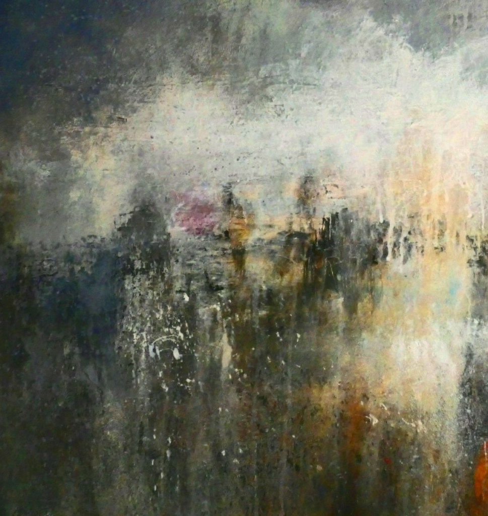 #Painting #MixedMedia on 40x40cm Canvas “Morning Mizzle and Cloud, Distant Sea, Porthcurno, #Cornwall”