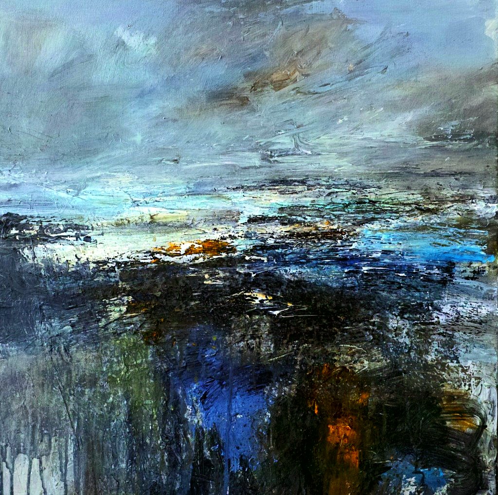 ← #Painting #MixedMedia on 40x40cm Canvas “Morning Mizzle and Cloud, Distant Sea, Porthcurno, #Cornwall”