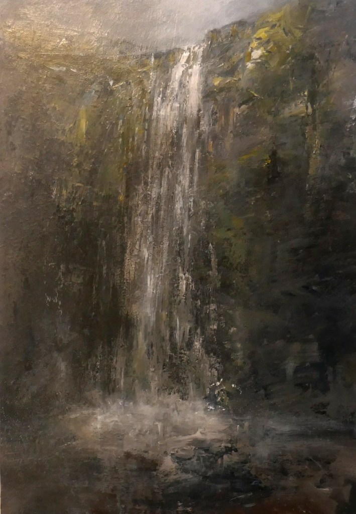 #Painting #MixedMedia on 100x70cm Canvas “Heavy Rain and Low Cloud, Middle Black Clough Waterfall, PeakDistrict”