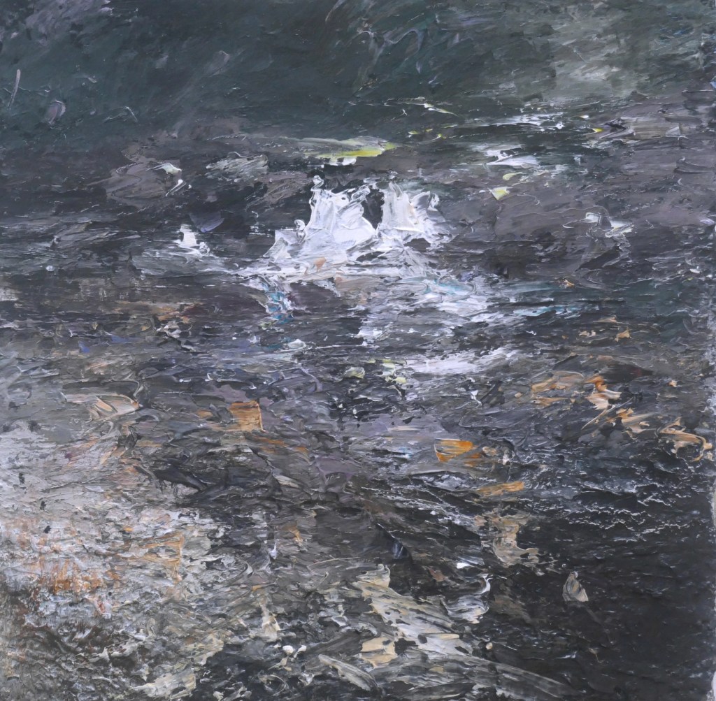 #Painting #MixedMedia on 40x40cm Canvas “Winter, Study of Stream Pool, Burbage Brook, Padley Gorge, #PeakDistrict