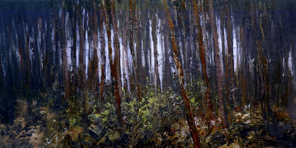 ← #Painting #MixedMedia on 120x60cm “Frosty Morning, Birch Woodland, Longshaw Estate” #PeakDistrict