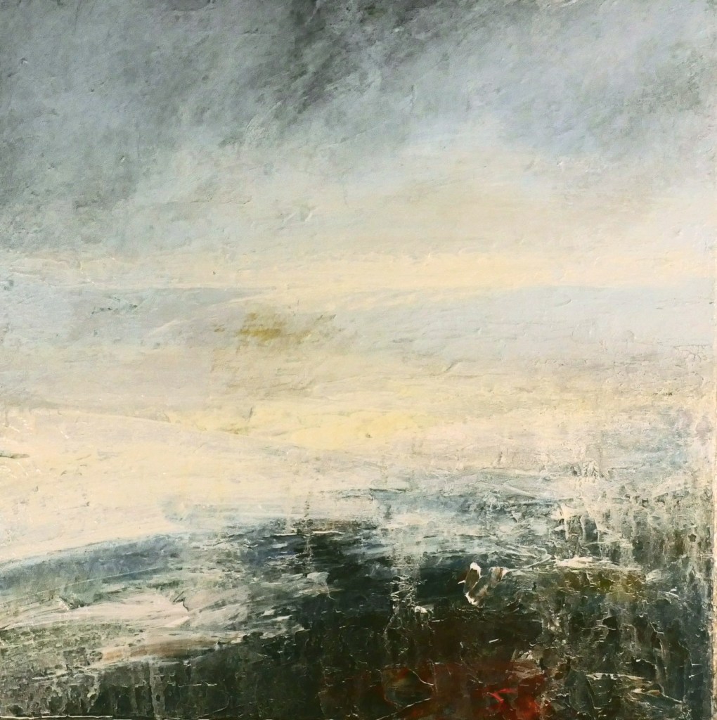 #Painting #MixedMedia on 40x40cm Canvas “Morning Mizzle and Cloud, Distant Sea, Porthcurno, #Cornwall”