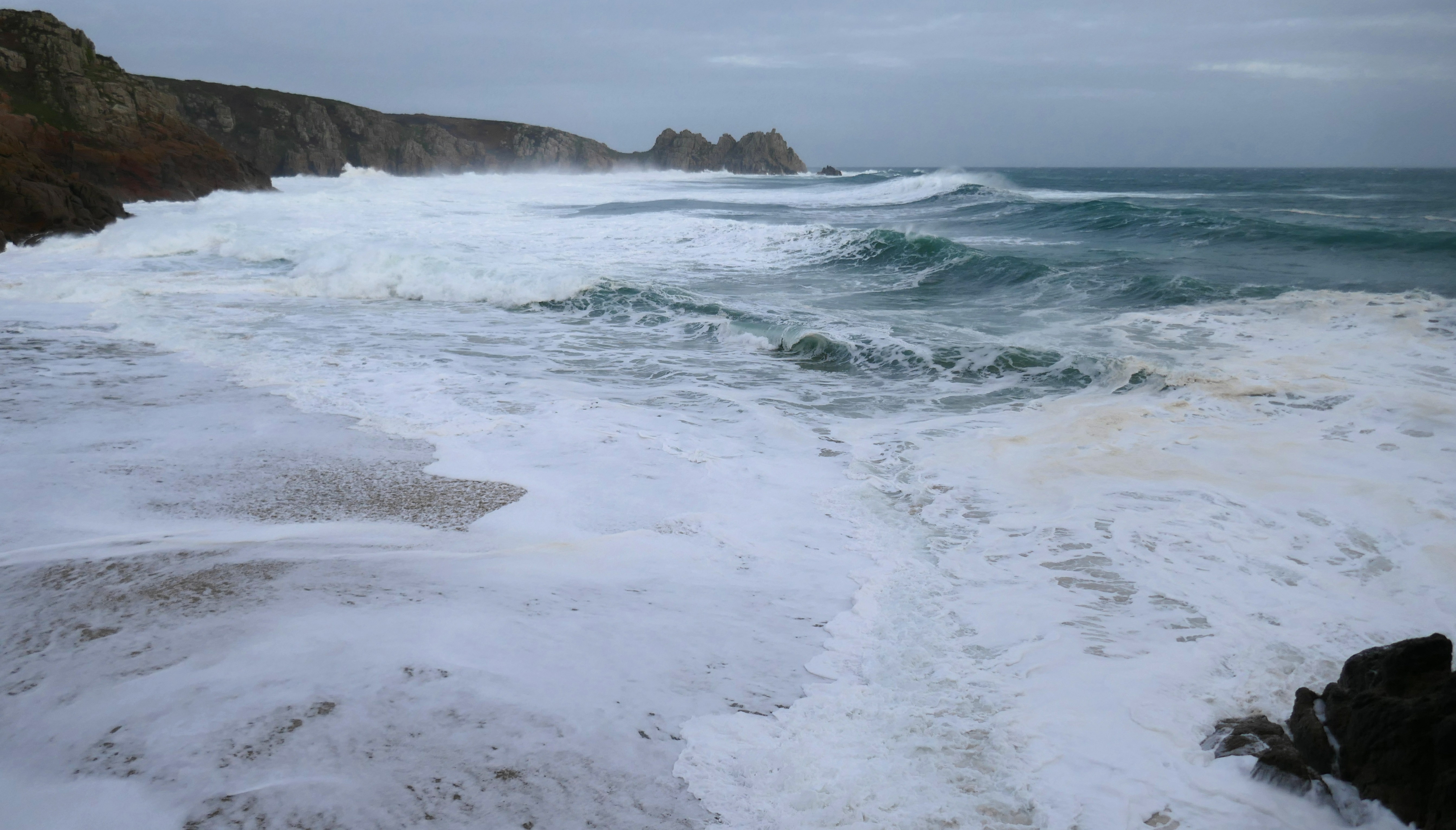 - #Pleinair #Watercolour #Painting on Paper “Low Tide, Powerful Waves, Porthcurno, #Cornwall”