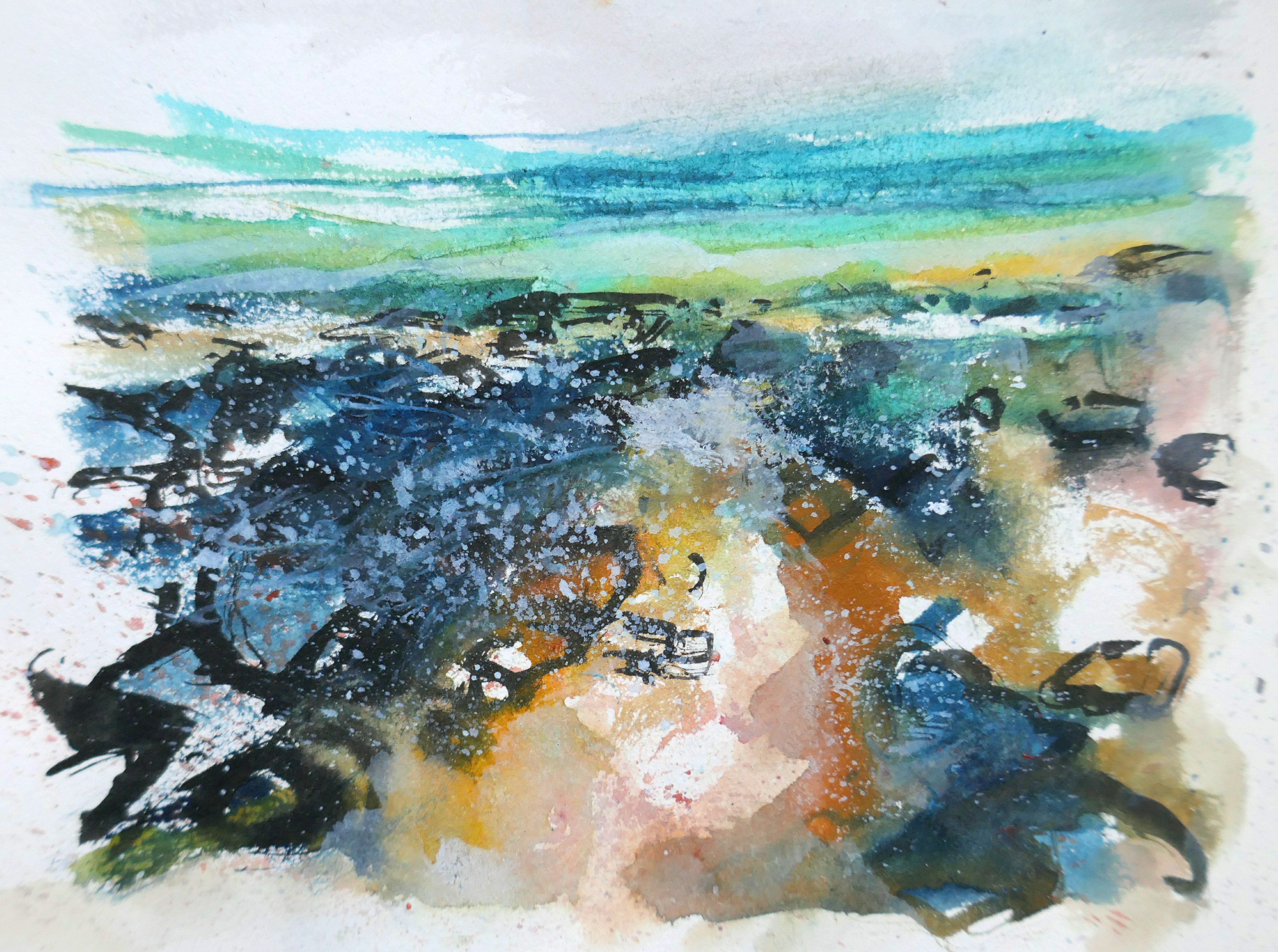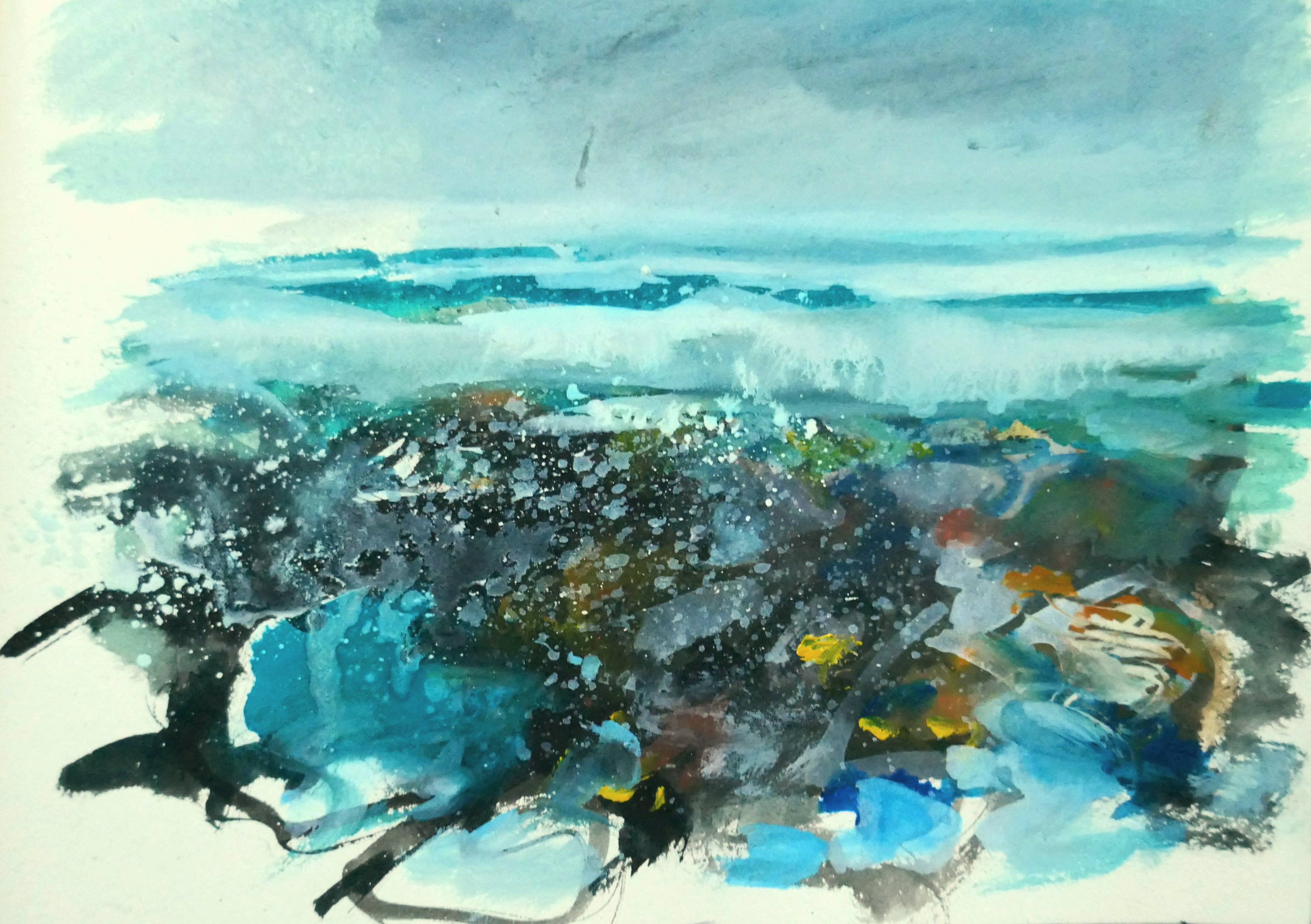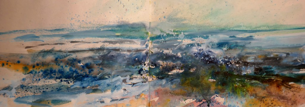 - #Pleinair #Ink #painting on Paper “Breaking Waves, Chypraze Cliffs, Pendeen, #Cornwall